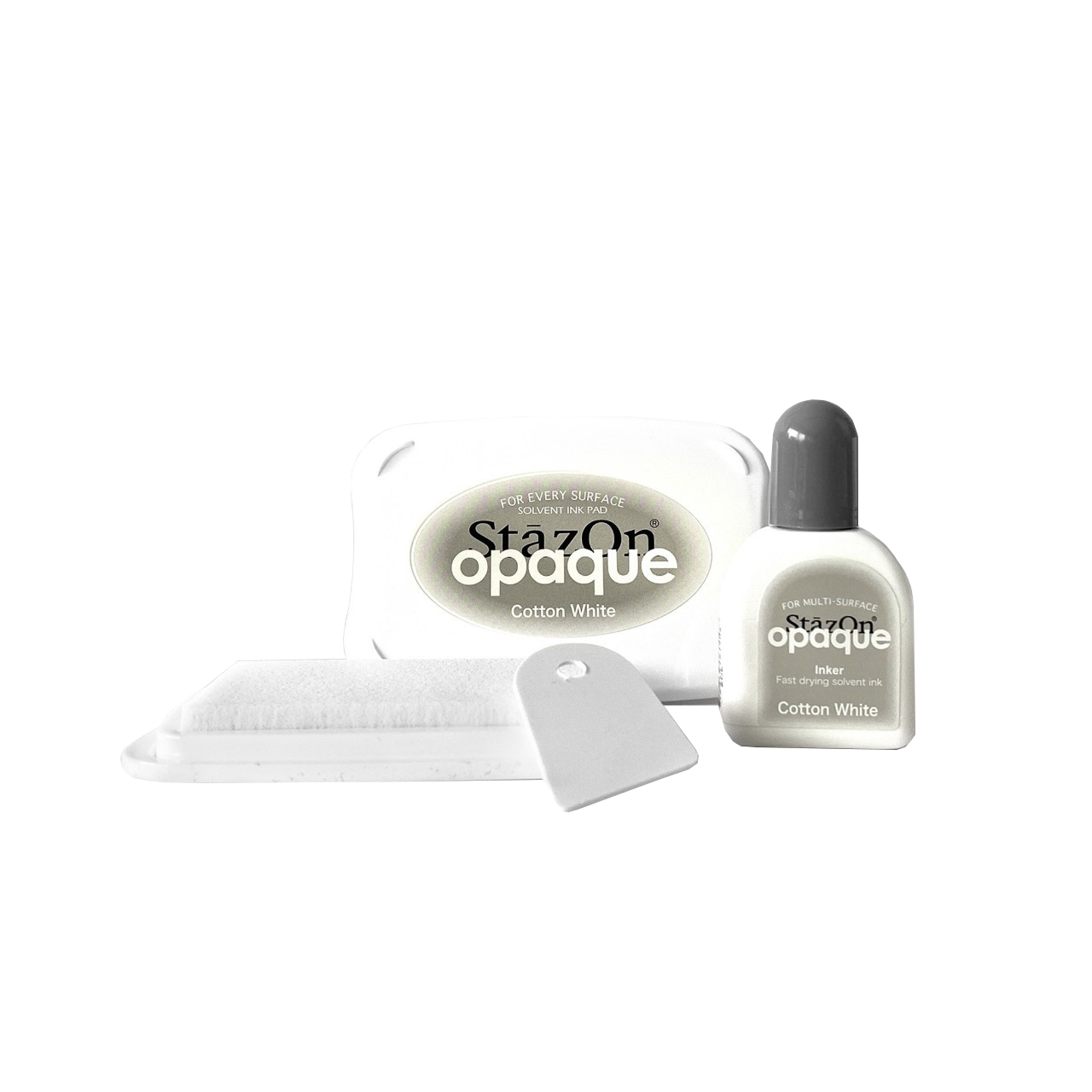 SZ-110 StazOn Stamp Pad+Inker Set : White color